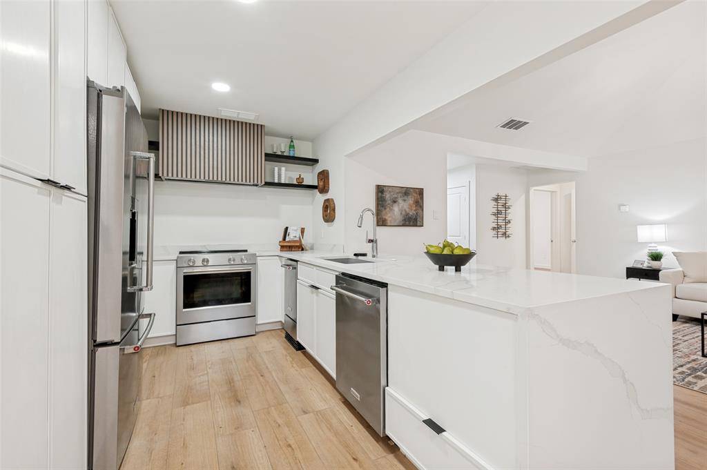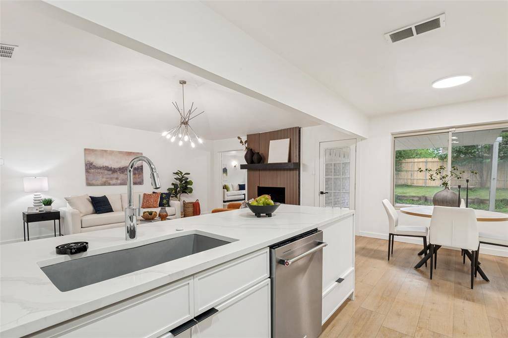 Fully renovated modern home in the heart of Bedford featuring luxury plank flooring, an open-concept layout, and a spacious entertaining area with a custom coffee-wine bar. The designer kitchen includes high-end KitchenAid appliances and an under-counter ice maker. The primary suite offers a spa-inspired bath with a dual shower. New roof and premium finishes throughout. Located in highly rated HEB ISD and just 5 minutes from DFW Airport with easy access to shopping, dining, and major highways. Will be available for showings by late April.