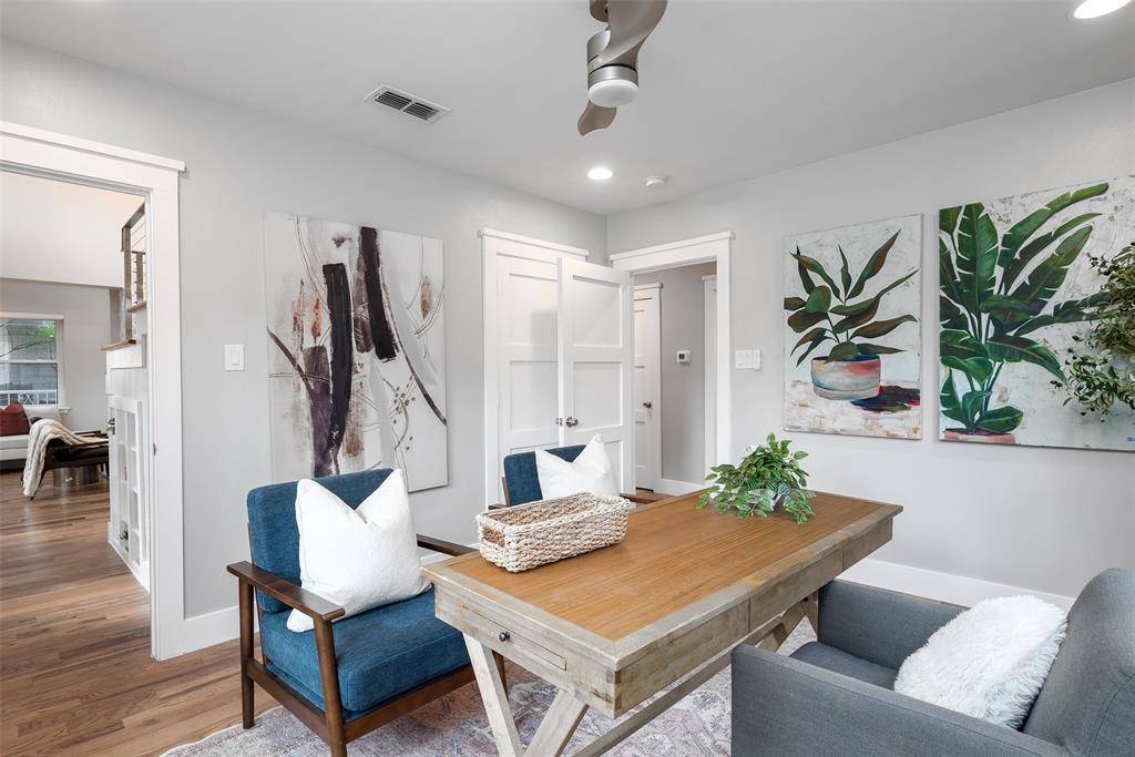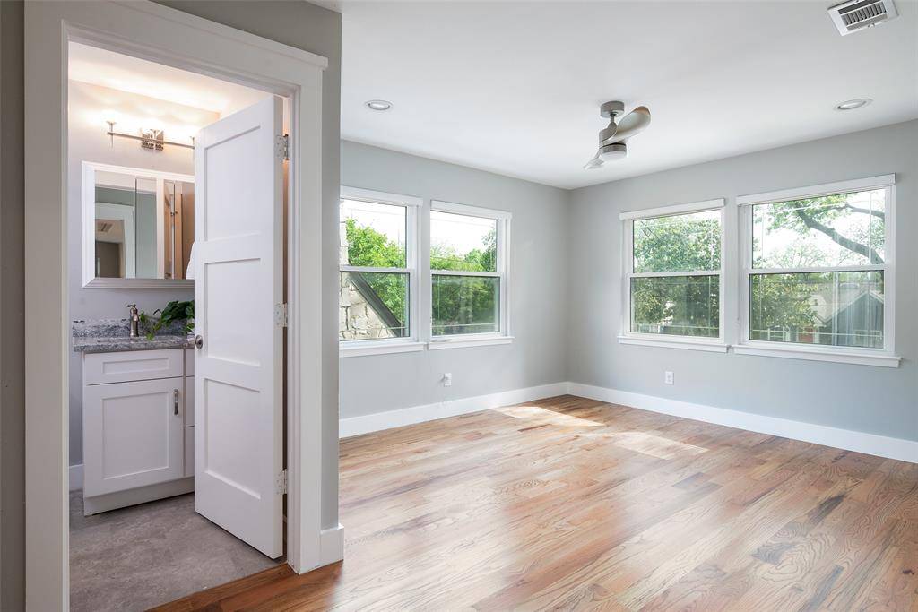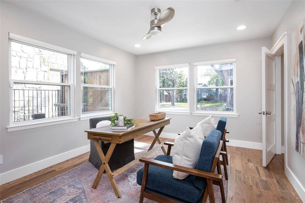 Tucked into the heart of Oak Lawn Heights, this exceptional residence offers a rare blend of style, flexibility, and location just minutes from Dallas' most vibrant districts. Sunlight fills the open-concept living spaces, creating an inviting atmosphere that flows effortlessly from the expansive living area to a beautifully designed kitchen anchored by a statement island—perfect for gathering and entertaining. Hardwood floors run throughout, adding warmth and character at every turn. The primary suite is a true retreat, featuring a custom-designed walk-in closet and private balcony—an ideal place to start or end your day. Above the detached garage, a private guest suite offers endless possibilities, whether hosting visitors, working from home, or creating an income-producing space. With a new parking pad, spacious backyard, and unbeatable proximity to the Medical District, Uptown, Downtown, and both Dallas airports, this home delivers a lifestyle defined by convenience, comfort, and opportunity.
