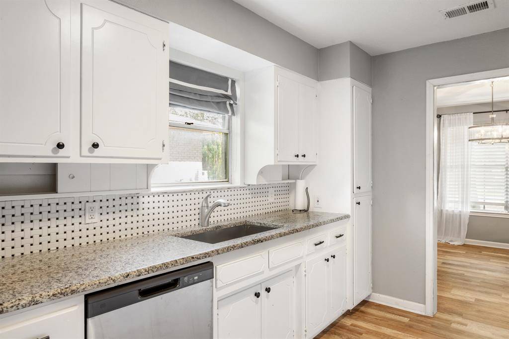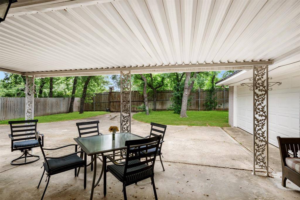 Classic charm meets everyday functionality in this beautifully updated one-story home in sought-after North Arlington, zoned to highly rated Butler Elementary School. Ideally located within walking distance to Shackelford Junior High School and Lamar High School, and offering quick access to Interstate 30 for an easy commute. Nestled among towering mature trees, this home welcomes you with a charming covered front porch and inviting curb appeal. Inside, you'll find a spacious and functional floorplan featuring two large living areas, a formal dining room, and a sunny breakfast area—perfect for both everyday living and entertaining. Fresh interior paint and new wood-look flooring flow throughout the main living spaces, creating a clean, updated feel. The open-concept kitchen is designed for connection and convenience, showcasing crisp white cabinetry, beautiful granite countertops, and great sightlines into the living areas. Built-ins add character and practical storage throughout the home. The private primary suite is complemented by two additional bedrooms and a second full bath. A huge utility room offers extra space for storage—an added bonus not often found. Step outside to enjoy a covered patio and a versatile rear-entry driveway—ideal for entertaining or play. Additional updates include a durable metal shake roof (2023) and a new water heater, providing peace of mind for years to come. With its classic style, modern updates, and unbeatable location, this North Arlington gem is one you don't want to miss!