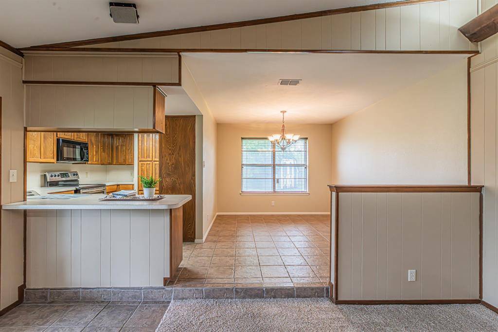 The interior features high beam celings with a stunning brick firelace and solid built-ins in the living room. Durable and timeless, the abundance of kitchen cabinetry provides ample stoarge space for all your culinary essentials. A dedicated dining area sits adjacent to the kitchen, making mealtime a breeze. The generous sized bedrooms includes a primary ensuite bathroom with dual sinks and seperate powder station or vanity area. Step outside to discover a covered back porch providing the perfect shaded retreat for outdoor dining or relaxing while overlooking the vast green space—ideal for pets, or play. This home is conveniently located with easy access to local Fort Worth amenities, shopping, and dining. Schedule your showing today and see the potential this charming home has to offer! Roof -2019, HVAC-2019 and water heater-2018.