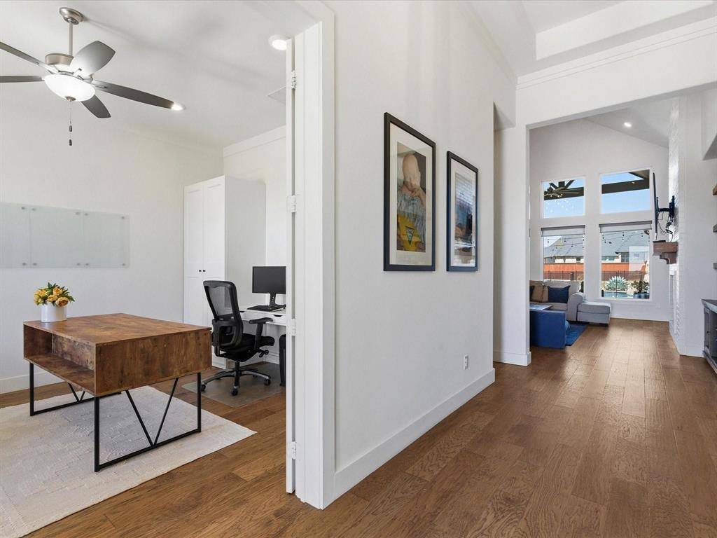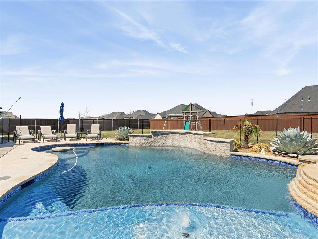 OPEN HOUSE SATURDAY 4-23-2026 FROM 12PM-2PM. This immaculate 4-bedroom, 4.5-bath home offers luxury, comfort, and modern living on a spacious ½-acre lot in the highly sought-after Northwest ISD. Step inside to find beautiful hardwood floors flowing through the main living areas, soaring vaulted ceilings, and a thoughtfully designed open floor plan perfect for entertaining. The gourmet kitchen features sleek quartz countertops, a large center island, stainless steel appliances, and ample cabinetry—ideal for both everyday living and hosting guests. The private study provides the perfect space for working from home or quiet reading. Every bedroom includes its own bath, offering privacy and convenience for family or guests. The smart home system keeps comfort and security at your fingertips. Step outside to your own backyard retreat, complete with a sparkling pool, relaxing hot tub, and plenty of space to play or unwind. Home offers a spacious 3-car garage. With top-rated schools, modern amenities, and timeless finishes, this home truly has it all.