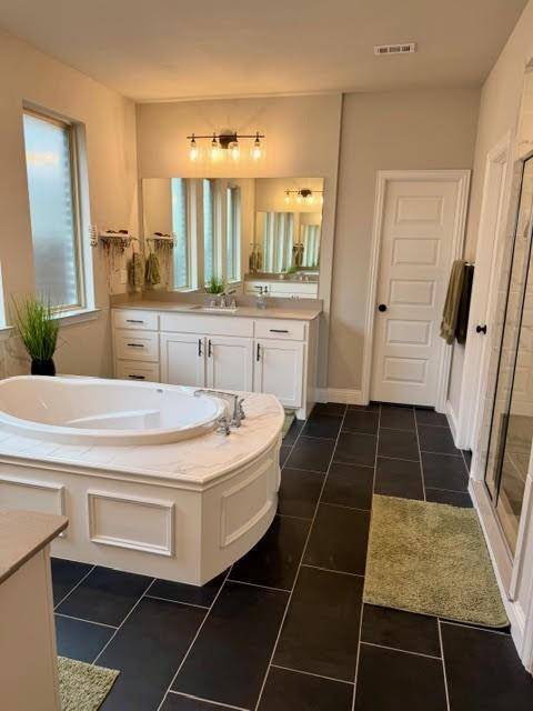 Step into style, space, & sophistication in this stunning 2021 built home offering approximately 3,353 sq. ft of thoughtfully designed living. Perfectly positioned on a desirable corner lot in the sought after Berkshire Richmond Community of N. Ft Worth, this 4 bedrm, 3 bath, designated office which also has a removable partition, mudrm, guest bedrm down, & 3 car tandem garage is a rare gem to find & will check every box. From the moment you enter, you will notice the elevated finishes & modern touches throughout. The high ceilings w beaming natural light through the windows from living rm w brand new remote controlled shades showcases the crisp white kitchen is totally a true show stopper, featuring an oversized island, elegant herringbone backsplash, gas cooktop, coffee & wine bar. The open concept layout flows seamlessly into the living area, highlighted by a cozy gas fireplace & walls of windows that frame serene greenbelt views and the outdoor paradise. Primary suite conveniently located on the first floor offers a luxurious retreat with a beautifully designed modern ensuite bath. Upstairs, enjoy endless entertainment w a spacious game rm & dedicated media rom perfect for movie nights & hosting guests. Step outside to your backyard oasis complete w an oversized covered patio & a gorgeous Gunite sparkling pool, all backing to a peaceful greenbelt where you can unwind and take in breathtaking Texas sunsets. Loaded with upgrades galore & designed for both comfort & style, this exceptional home blends luxury living w everyday functionality in one of the area's most desirable neighborhoods that offers an amazing pool, playground, catch release fishing, walking biking trails, & paint a rock & add it to the painted ROCK SNAKE trail. This LOCATION is amazing & is in the desirable Northwest ISD & is super close to Costco, Target, Alliance Town Center shopping including restaurant choices to savor your flavor. This home won't disappoint so don't let this one slip away.
