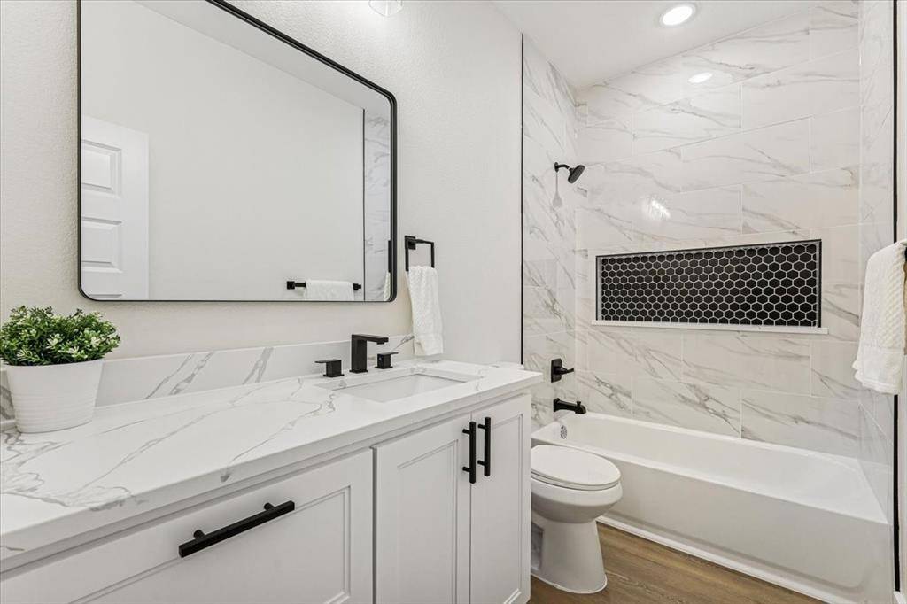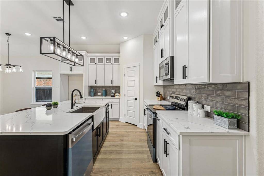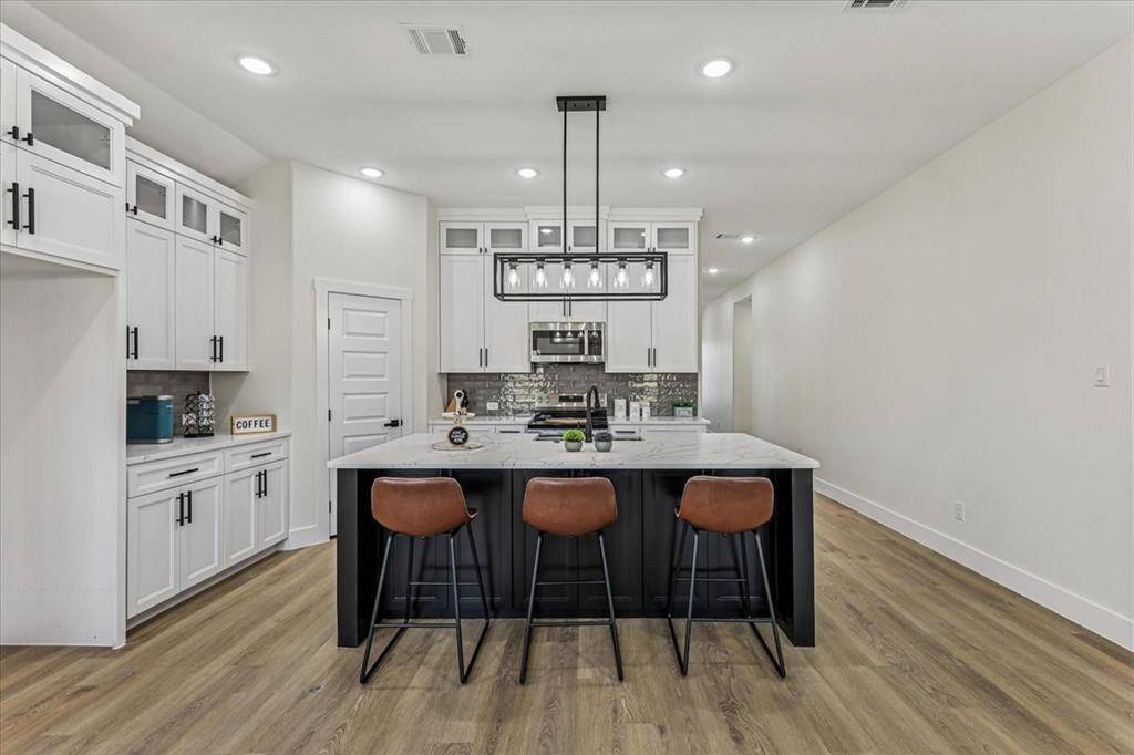 This modern 4 bed, 2 bath home features an open layout perfect for entertaining, with 10 ft ceilings, luxury vinyl plank flooring, quartz countertops, custom cabinetry, and sleek finishes throughout.