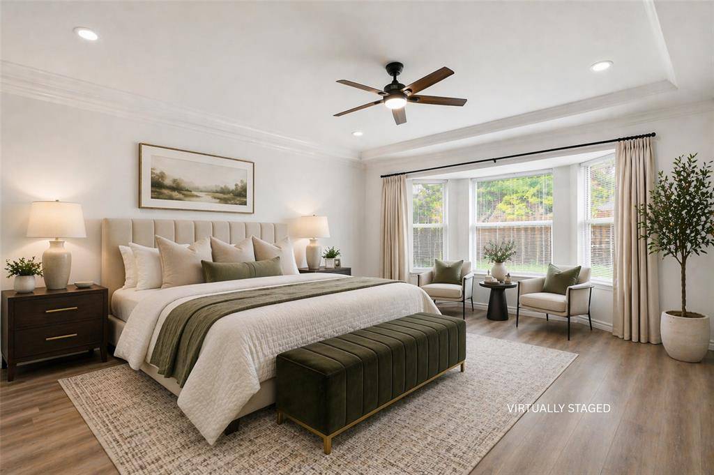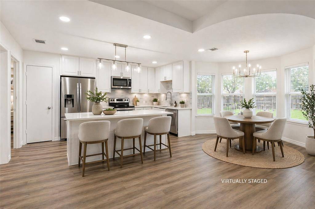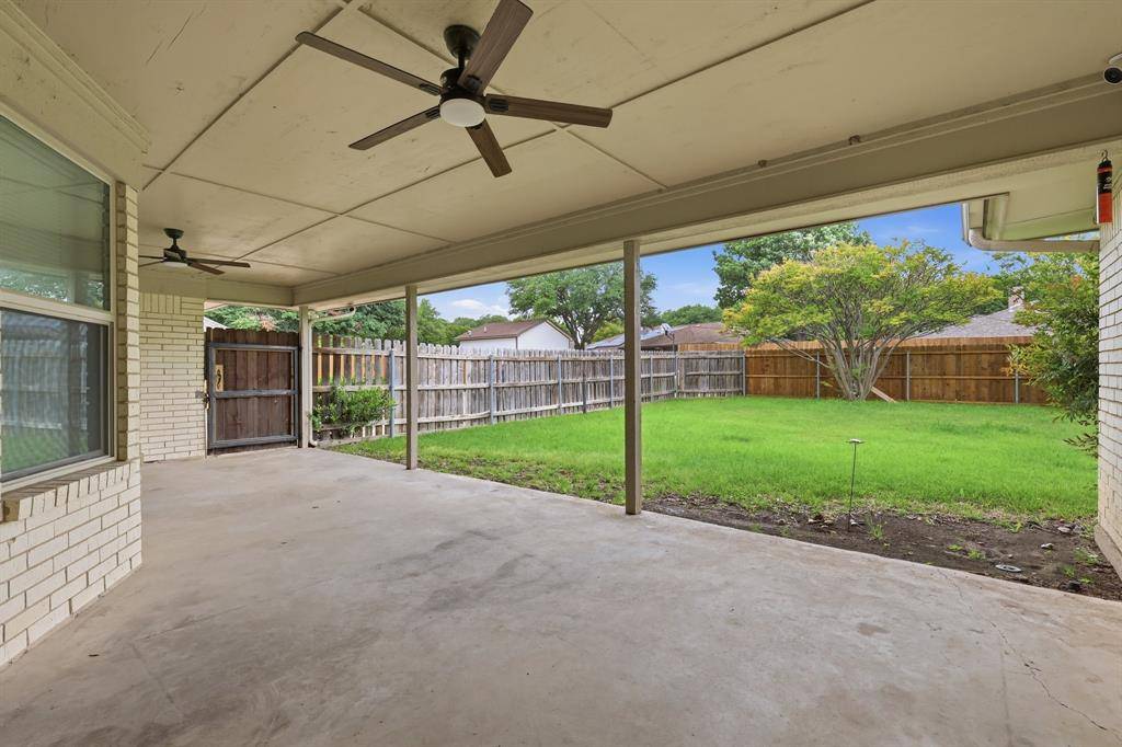 Beautifully updated and thoughtfully designed, this one-story home offers a light-filled layout with both comfort and flexibility. A welcoming foyer opens to a versatile flex space on the right—ideal for a home office or formal living—while a dining room on the left connects seamlessly to the kitchen. The kitchen features an island, new countertops, and stainless steel appliances, all flowing into the spacious family room with a cozy fireplace, creating an ideal setup for everyday living and entertaining. The home includes four bedrooms and three full baths, highlighted by a generously sized primary suite with two walk-in closets, complete with a large ensuite bath featuring a garden tub, separate shower, and double vanities. Fresh interior paint and luxury vinyl flooring throughout add a clean, modern feel, while abundant natural light enhances every space. Step outside to a covered patio overlooking a huge backyard, complete with a large rear driveway for added convenience. Directly across the street, a park and playground offer even more room to enjoy the outdoors. An added bonus is the expansive attic space accessible from the garage, with staircase access and flooring already in place—perfect for future expansion, a fifth bedroom, or additional storage. Ideally located with quick access to I-20 and the Chisholm Trail Parkway, this home offers effortless connectivity to everything Fort Worth has to offer. Just a short drive to downtown, you'll enjoy easy access to dining, entertainment, and major employers—while still coming home to a quiet, established neighborhood.