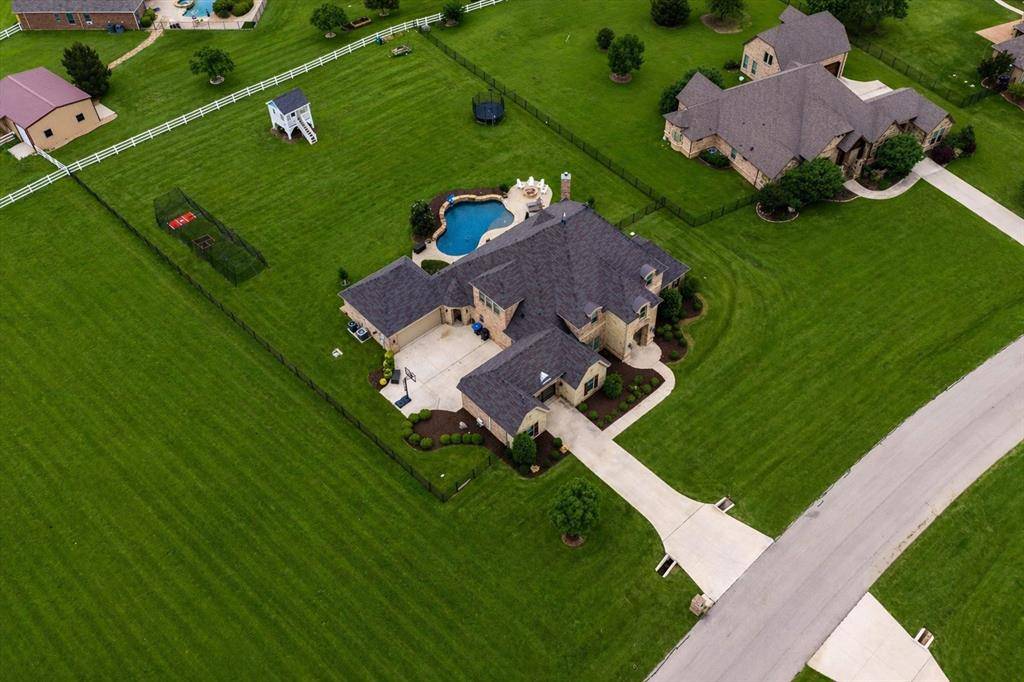Step outside to a private, resort-style backyard retreat featuring a sparkling pool, fire pit seating, and an expansive covered patio with outdoor kitchen—designed for elevated entertaining and everyday luxury. The sprawling, oversized yard offers exceptional space and privacy, complete with a charming playhouse with electricity and ample room for pets, play, or hosting. Experience private, estate-style living in the heart of Haslet.